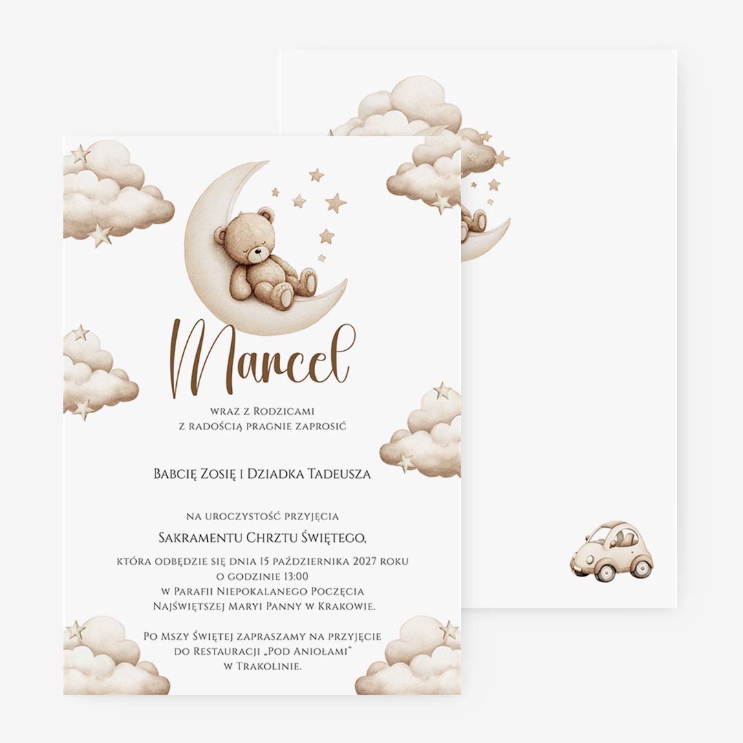 Jednokartkowe zaproszenie z misiem w odcieniach beżu – CE°144