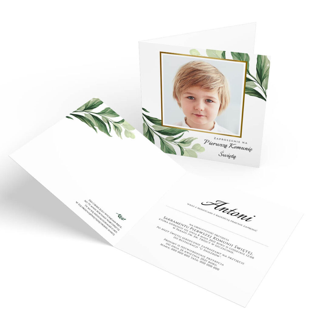 Zaproszenie na Komunię Świętą ze zdjęciem w odcieniach zieleni – N°633