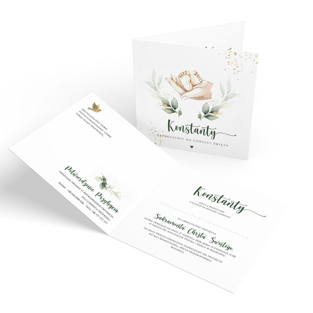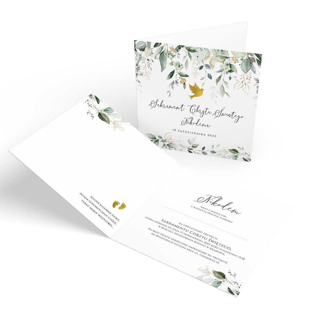 Zaproszenie na Chrzest Święty z delikatnymi elemntami listków – Lou Simon