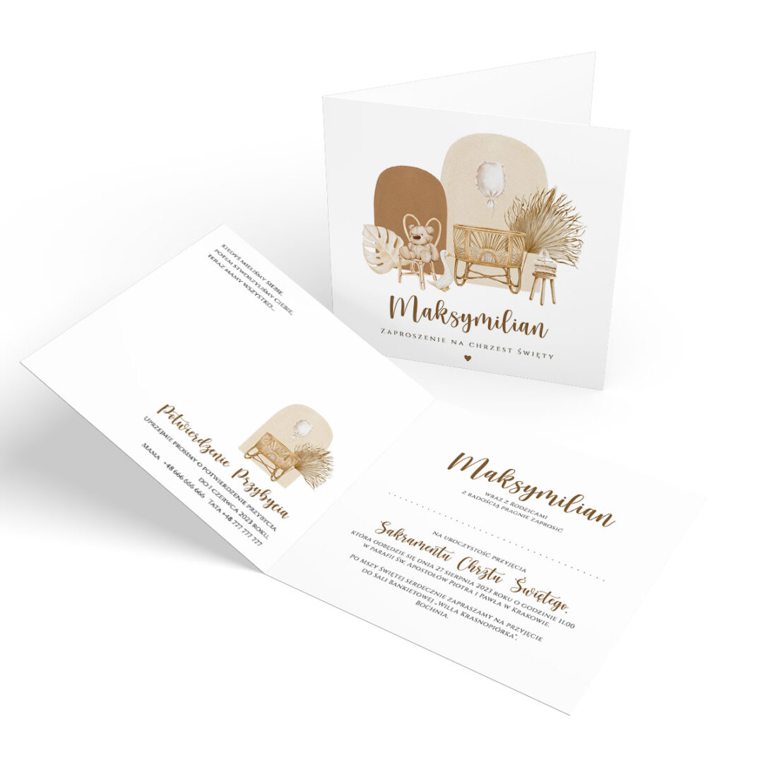Zaproszenie na Chrzest Święty w odcieniach brązu i beżu-Berti