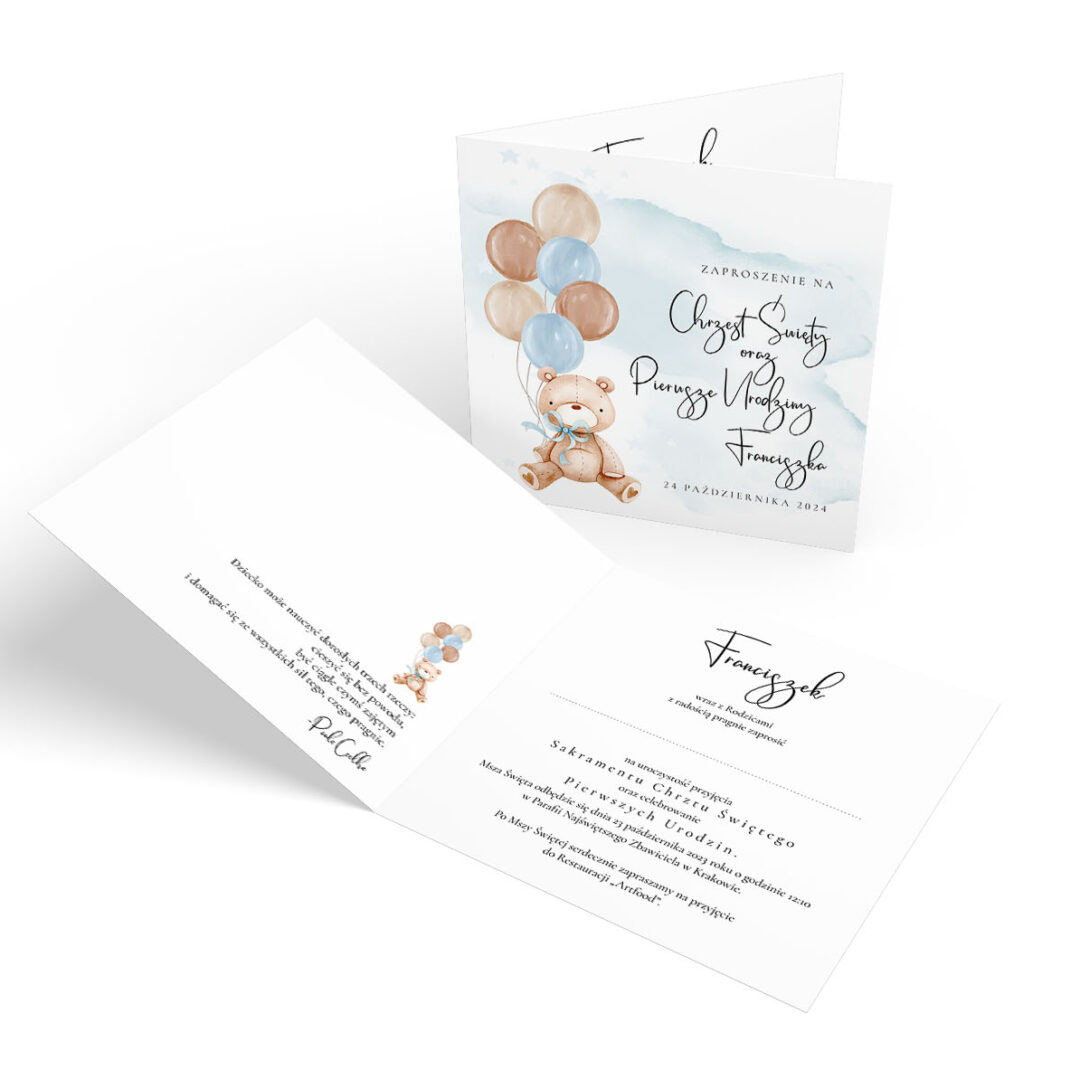 Zaproszenie na Chrzest Święty z niebieskim balonikiem dla chłopca – N°1270