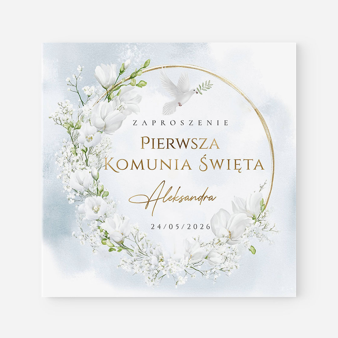 Nasze zaproszenia na komunię to doskonałe połączenie elegancji, staranności wykonania i indywidualnego podejścia. Każdy projekt tworzymy z myślą o tym, by zaproszenie stało się pięknym początkiem tej ważnej uroczystości. Dzięki możliwości personalizacji możesz w pełni dostosować zaproszenie do swoich oczekiwań, tworząc pamiątkę, która na długo pozostanie w pamięci Twojej oraz Twoich gości.