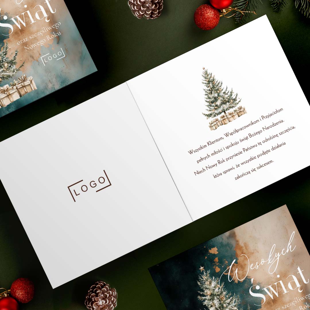 Logowane kartki świąteczne po złożeniu mają wymiary 14,5×14,5 cm – co oznacza, że wymiarem jest idealnie dopasowana do koperty. Ten uniwersalny format sprawia, że nasza kartka doskonale sprawdzi się zarówno w prywatnych życzeniach dla bliskich, jak i w eleganckich podziękowaniach dla partnerów biznesowych. Połącz wyjątkowy wygląd z praktycznością, wybierając format, który zawsze pasuje!
