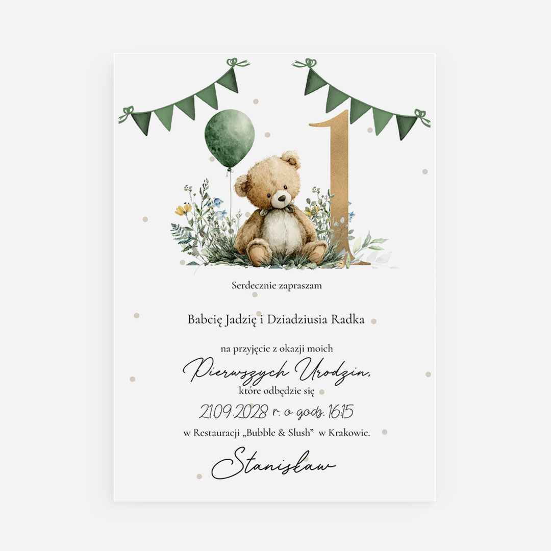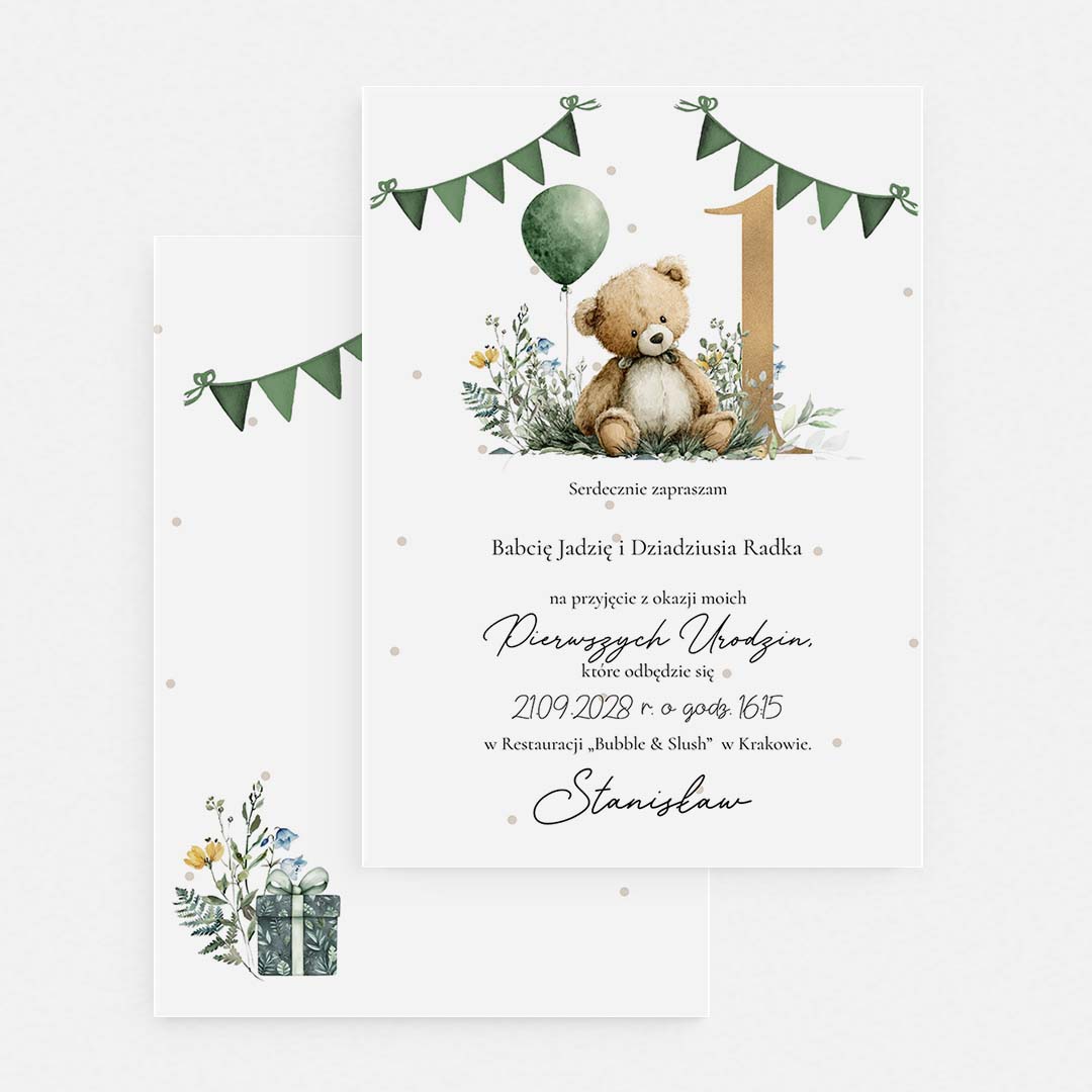 Jednokartkowe zaproszenie na roczek dla chłopca – F°132