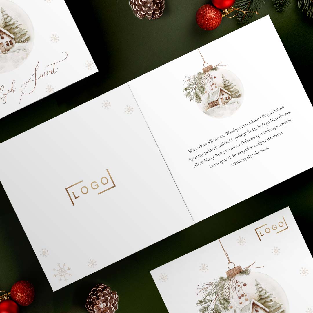 Jeśli prześlesz logo swojej firmy, umożliwimy jego nadruk w dowolnym miejscu, dzięki czemu Twoje kartki świąteczne będą nie tylko spersonalizowane zgodnie z Twoimi preferencjami, ale również będziesz mógł w idealny sposób wykorzystać wizerunek Twojej firmy w celu nawiązania jeszcze bliższych relacji z partnerami biznesowymi.