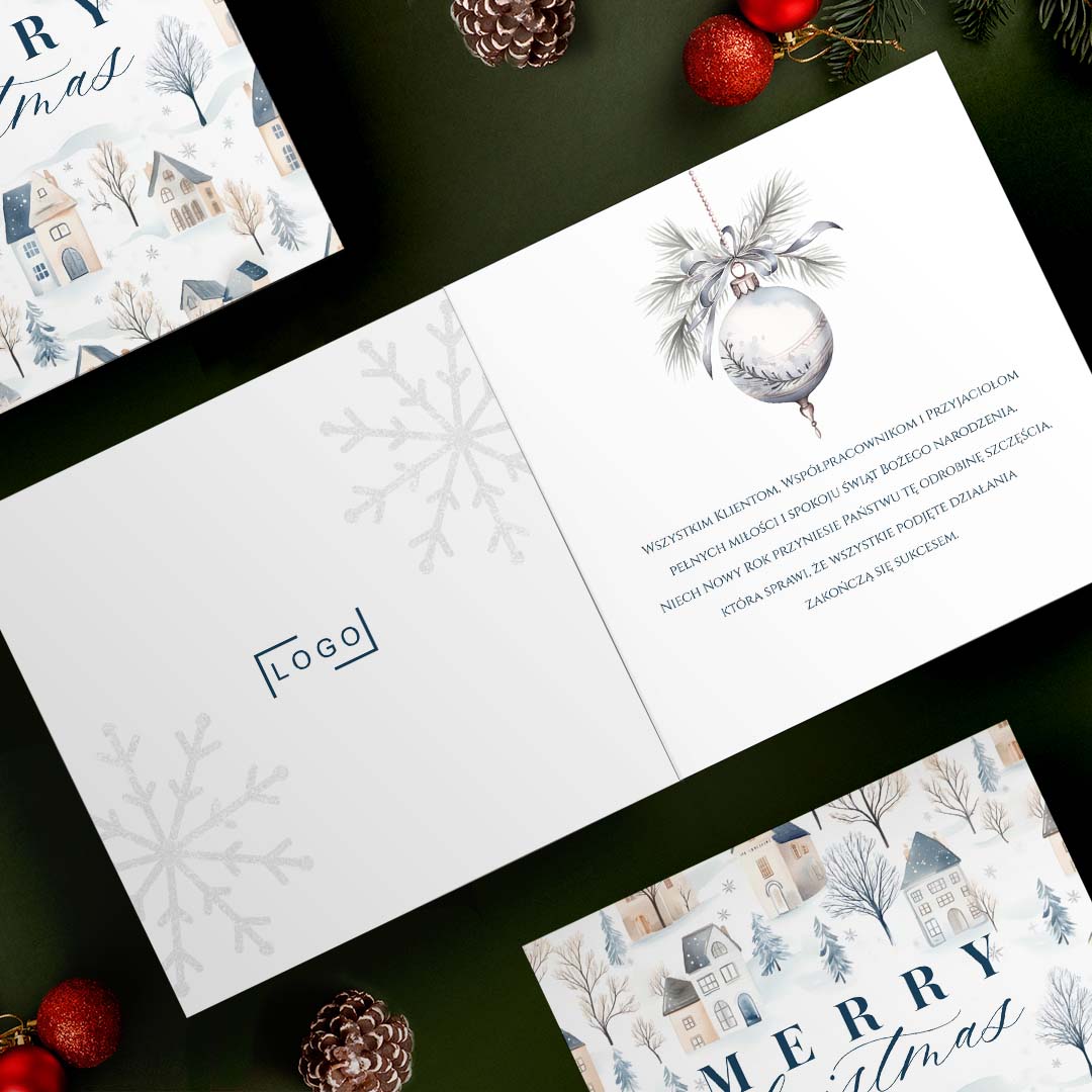 Wykonane z solidnego papieru o gramaturze 350g, złożone w estetyczny format 14,5×14,5 cm, idealnie nadają się do przekazania świątecznych pozdrowień w profesjonalny sposób.