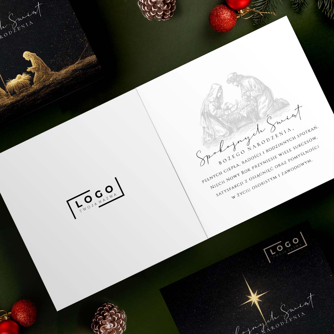 Jeśli prześlesz logo swojej firmy, umożliwimy jego nadruk w dowolnym miejscu, dzięki czemu Twoje kartki świąteczne będą nie tylko spersonalizowane zgodnie z Twoimi preferencjami, ale również będziesz mógł w idealny sposób wykorzystać wizerunek Twojej firmy w celu nawiązania jeszcze bliższych relacji z partnerami biznesowymi.