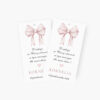 Słodka zawieszka z motywem niebieskiej kokardki, idealna do personalizacji z dowolnym tekstem. Wykonana z wysokiej jakości papieru o gramaturze 350g, co zapewnia trwałość i elegancki wygląd. Doskonała jako dodatek do prezentów, zaproszeń czy podziękowań. Na zawieszce znajduje się miejsce na własny tekst, co pozwala na indywidualne dostosowanie do różnych okazji. Na przykładzie widnieje tekst podziękowania za obecność na ważnym wydarzeniu.