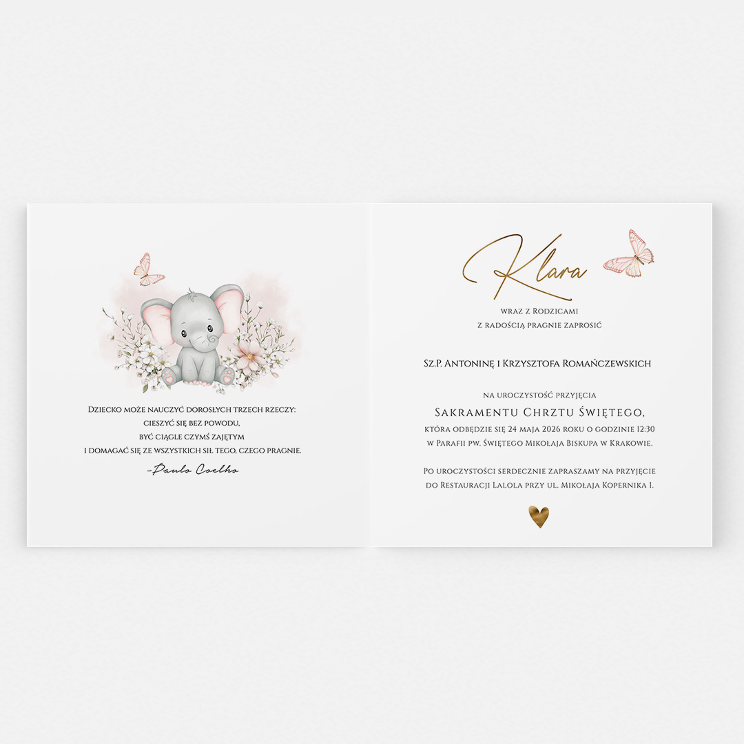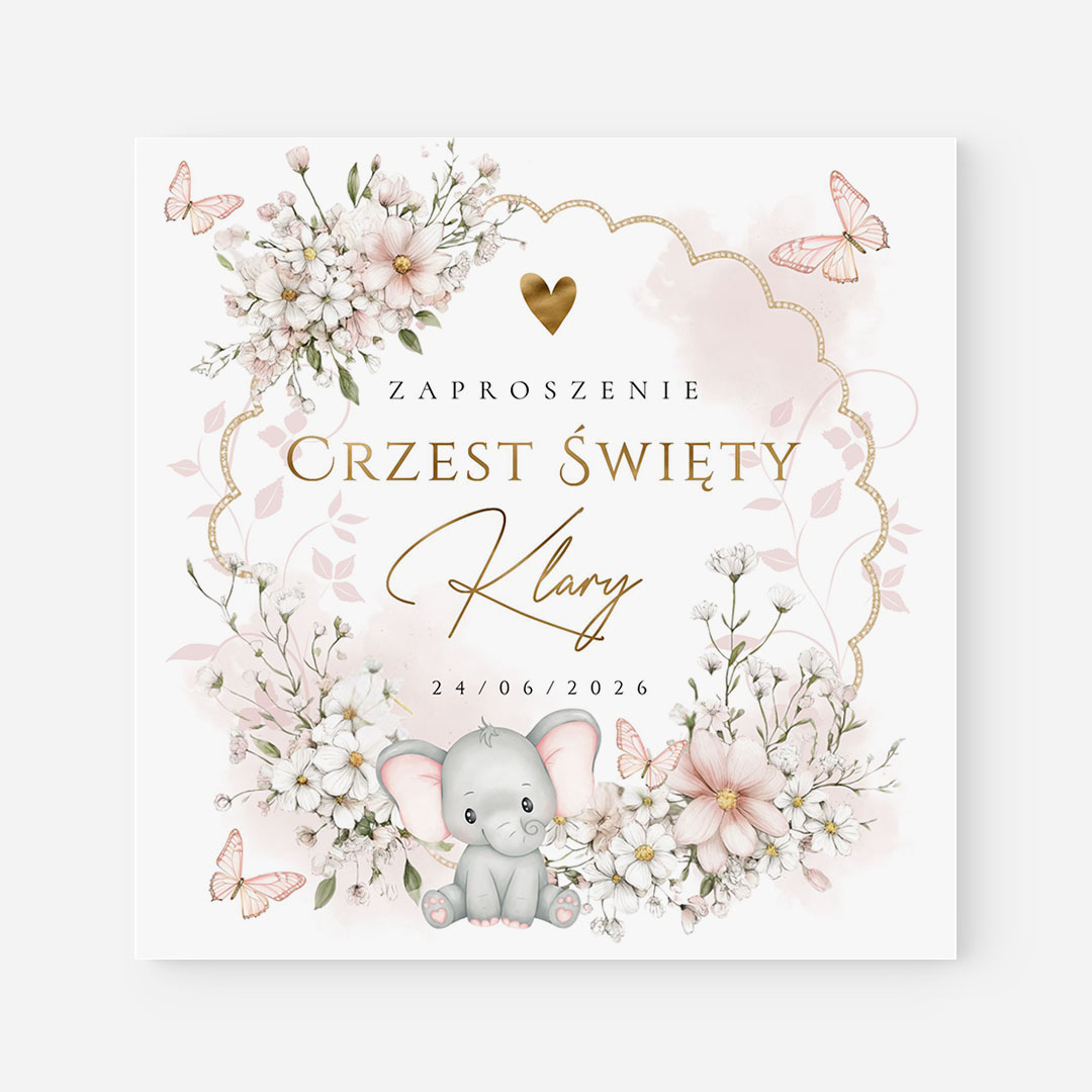 Urocze zaproszenie na Chrzest ze słonikiem – CE°160