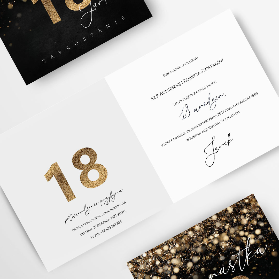 Zaproszenie na 18 w złoto-czarnej kolorystyce w stylu glamour – RT°94