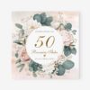 Eleganckie zaproszenie na 50. rocznicę ślubu w klasycznym stylu. Ciemne tło pięknie podkreśla dekoracyjną kompozycję kwiatów w odcieniach bordo, różu i kremu, tworząc wyrazisty i stylowy efekt. Starannie dobrana typografia i kompozycja sprawiają, że zaproszenie idealnie pasuje do uroczystości o podniosłym charakterze. Projekt można dostosować do treści i imion jubilatów.
