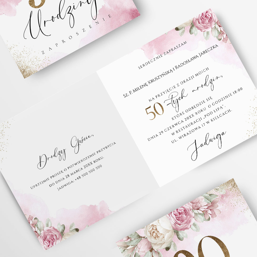 Zaproszenie na 50 urodziny z motywem w odcieniach różu – RT°109
