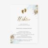 Zaproszenie na chrzest dla chłopca z uroczą ilustracją misia i balonów w odcieniach błękitu. Lekka, dziecięca stylistyka idealnie wpisuje się w radosny charakter uroczystości. Personalizowany projekt pozwala dopasować tekst do każdego wydarzenia. To doskonały wybór na wyjątkowy dzień Twojego synka.