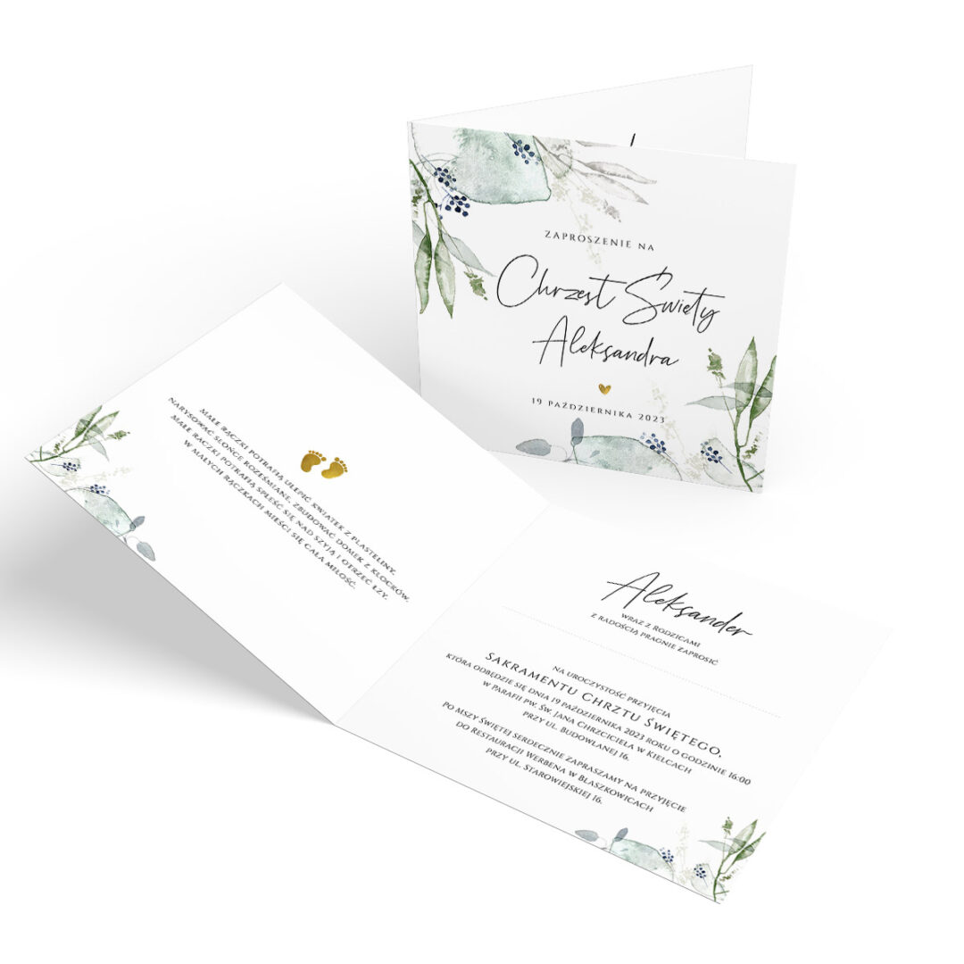 Każde zaproszenie wykonane jest z wysokiej jakości materiałów, co zapewnia estetyczny wygląd i trwałość. Proponujemy delikatne, uniwersalne wzory graficzne, które doskonale wpisują się w uroczysty charakter wydarzenia. Subtelna kolorystyka, staranne wykończenie i składana forma sprawiają, że zaproszenia prezentują się pięknie zarówno w dłoniach gości, jak i na stole podczas przyjęcia.