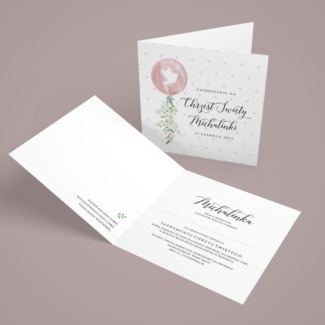 Kwadratowe zaproszenie na Chrzest Święty – Alena