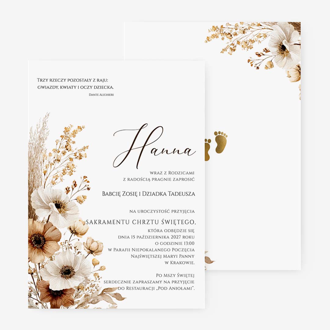 Zaproszenie na chrzest w stylu boho z białymi kwiatami – CE°140