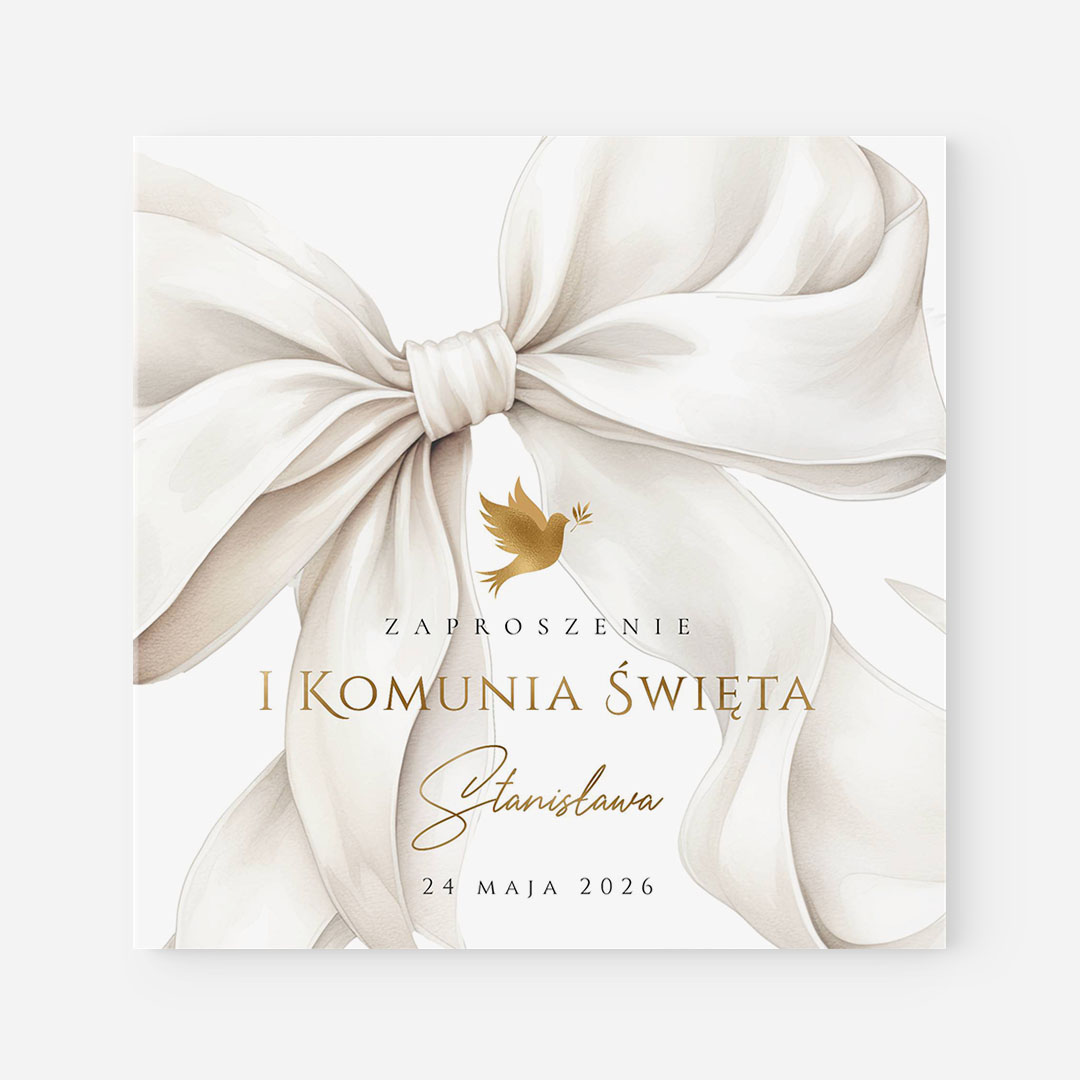 Zaproszenie na Komunię z motywem beżowej kokardy – BRT887