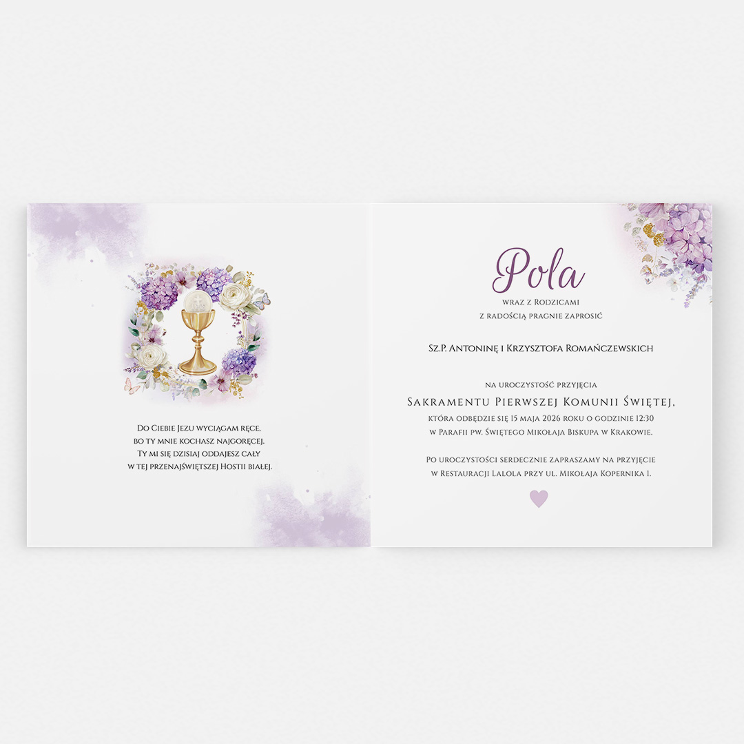 Nasze zaproszenia komunijne to coś więcej niż praktyczna informacja o wydarzeniu. To także piękny wyraz wdzięczności i szacunku wobec zaproszonych gości. Dzięki personalizacji możesz dostosować każdy szczegół zaproszenia: