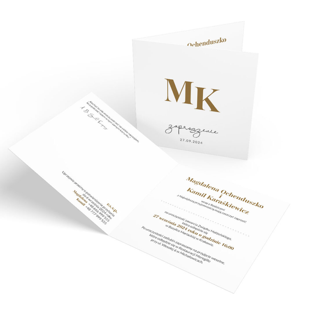 To składane zaproszenie wykonane jest z najwyższej jakości papieru gładkiego o satynowanym wykończeniu, które dodaje mu elegancji i wyjątkowego blasku. Dzięki gramaturze papieru wynoszącej 350g zaproszenie ma solidną strukturę, co sprawia, że jest trwałe i wyjątkowo prestiżowe.