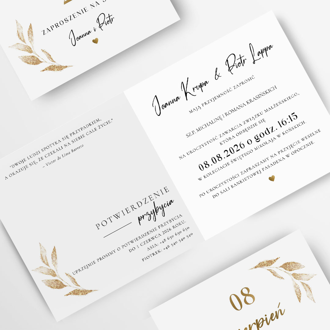 Każdy detal można dostosować – od imion Pary Młodej, przez datę i miejsce uroczystości, aż po indywidualne formuły czy ulubione cytaty.