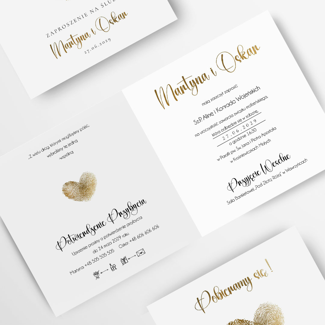 Zaproszenia drukowane są cyfrowo w kolorystyce CMYK i nie posiadają tłoczeń folią oraz dodatkowych uszlachetnień.