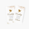 Zawieszki z podziękowaniem na uroczystości dziecięce to subtelny, a jednocześnie niezwykle uroczy sposób na okazanie wdzięczności bliskim za obecność w tym ważnym dniu. Idealne na komunię świętą czy chrzest– pięknie dopełniają aranżację stołu oraz dekorację upominków wręczanych gościom. Zawieszki drukowane są na wysokiej jakości papierze, z dbałością o każdy detal, a możliwość personalizacji (np. imienia dziecka, daty uroczystości lub krótkiego tekstu podziękowania) sprawia, że każda z nich nabiera indywidualnego charakteru. Doskonale sprawdzą się przy słoiczkach z miodem, pudełeczkach ze słodkościami czy drobnych prezencikach – tworząc spójną i stylową oprawę przyjęcia.