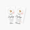 Zawieszki z podziękowaniem na uroczystości dziecięce to subtelny, a jednocześnie niezwykle uroczy sposób na okazanie wdzięczności bliskim za obecność w tym ważnym dniu. Idealne na komunię świętą – pięknie dopełniają aranżację stołu oraz dekorację upominków wręczanych gościom. Zawieszki drukowane są na wysokiej jakości papierze, z dbałością o każdy detal, a możliwość personalizacji (np. imienia dziecka, daty uroczystości lub krótkiego tekstu podziękowania) sprawia, że każda z nich nabiera indywidualnego charakteru. Doskonale sprawdzą się przy słoiczkach z miodem, pudełeczkach ze słodkościami czy drobnych prezencikach – tworząc spójną i stylową oprawę przyjęcia.