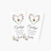 Zawieszki z podziękowaniem na uroczystości dziecięce to subtelny, a jednocześnie niezwykle uroczy sposób na okazanie wdzięczności bliskim za obecność w tym ważnym dniu. Idealne na komunię świętą – pięknie dopełniają aranżację stołu oraz dekorację upominków wręczanych gościom. Zawieszki drukowane są na wysokiej jakości papierze, z dbałością o każdy detal, a możliwość personalizacji (np. imienia dziecka, daty uroczystości lub krótkiego tekstu podziękowania) sprawia, że każda z nich nabiera indywidualnego charakteru. Doskonale sprawdzą się przy słoiczkach z miodem, pudełeczkach ze słodkościami czy drobnych prezencikach – tworząc spójną i stylową oprawę przyjęcia.