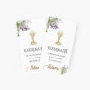 Zawieszki z podziękowaniem na uroczystości dziecięce to subtelny, a jednocześnie niezwykle uroczy sposób na okazanie wdzięczności bliskim za obecność w tym ważnym dniu. Idealne na komunię świętą – pięknie dopełniają aranżację stołu oraz dekorację upominków wręczanych gościom. Zawieszki drukowane są na wysokiej jakości papierze, z dbałością o każdy detal, a możliwość personalizacji (np. imienia dziecka, daty uroczystości lub krótkiego tekstu podziękowania) sprawia, że każda z nich nabiera indywidualnego charakteru. Doskonale sprawdzą się przy słoiczkach z miodem, pudełeczkach ze słodkościami czy drobnych prezencikach – tworząc spójną i stylową oprawę przyjęcia.
